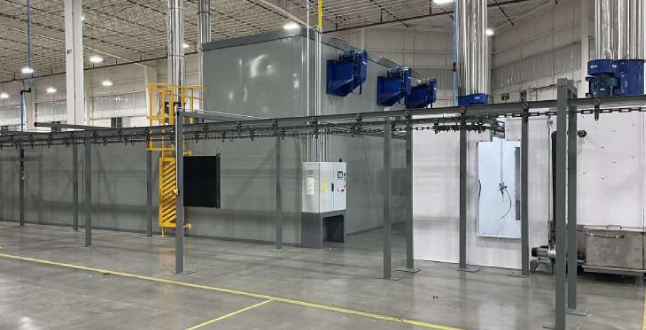 Posterior al proceso de pintura, los hornos de curado se encargan de sinterizar los recubrimientos. Tienen varias cámaras de combustión y difusores ajustables para lograr curvas de temperatura que permitan lograr las mejores características del recubrimiento.